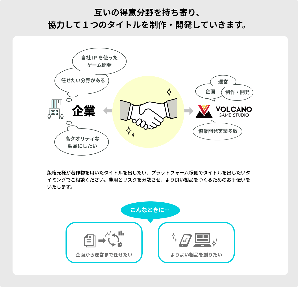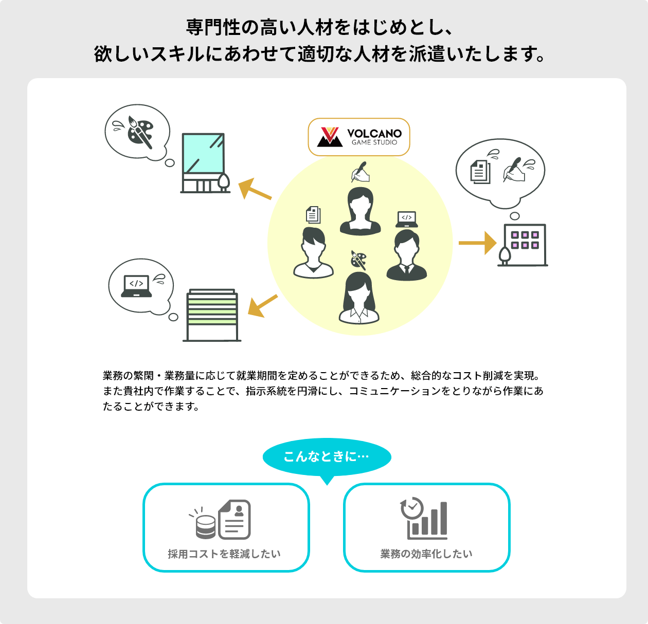 ご依頼内容に応じて「派遣」「受託」「協業」など、さまざまな形態で